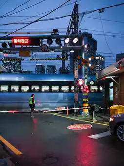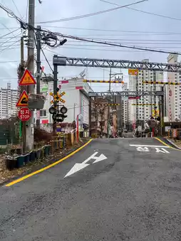 There are not many railroad crossings in Seoul, and it is rare to find one on a road like this.