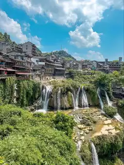 The Furong Waterfall isn’t just pretty — it’s a symbol of the town’s charm: ancient culture blending naturally with dramatic scenery.