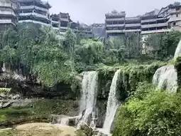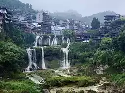 Furongzhen Ancient Town (芙蓉镇) is a famous ancient village in Hunan Province, China. It's renowned for its ancient architecture and beautiful nature, especially the large waterfall that flows through the town. You can enjoy the village's scenery both day and night. With a history of over 2,000 years, it's become a 4A-level tourist attraction in China. We visited during the rainy season, and it was incredibly lush. We were with a tour group, so we didn't stay until the night. The view was truly stunning and breathtaking. I highly recommend staying overnight.
