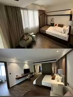 ❤️Outside the room, there's a large hot spring pool connected to the mountain forest. The air is very fresh, and the pool is very clean, cleaned twice a day, super reassuring. The hotel also has a lot of activities, including cool off-road vehicles and CS. They also have childcare and a children's play area, perfect for families.