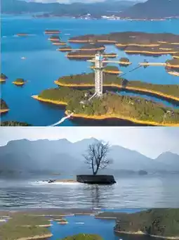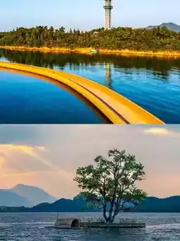 🔵A Tree in the Vast Sea: A lone tree standing in the lake’s center; raft around it three times to unlock the martial arts vibe like *Crouching Tiger, Hidden Dragon*.