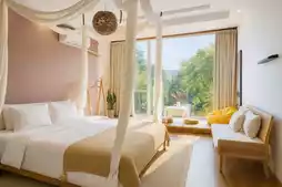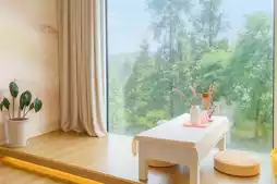 The guesthouse is nestled among mountains and waters, with a courtyard full of green plants and flowers, and wooden boardwalks winding through, making every snapshot a forest-themed masterpiece. The lobby is simple yet stylish, with warm pendant lights paired with rattan furniture, instantly relieving travel fatigue. The front desk thoughtfully brews local green tea and proactively introduces nearby sightseeing routes.