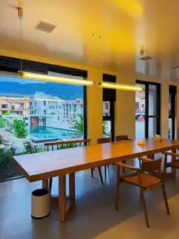 Just looking up, you see blue skies, mountain views, and drifting white clouds, so beautiful! 🥹 Such a quiet and comfortable place is really rare in the city~ Honestly, this kind of cozy vibe is perfect for coming with friends and pets!! The best part is the location is absolutely prime, right near Lushan West Sea, Yunju Mountain, Zhelin Ancient Town, and the Grand Canyon⛰️!!
