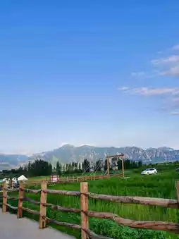 Crescent Lake, nestled among the mountains, resembles a new moon embedded in the landscape. Its crystal-clear waters mirror the blue sky and white clouds above. Willow trees sway gently by the lakeside, and the soft breeze creates ripples on the surface, shimmering like strands of silver.