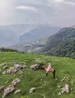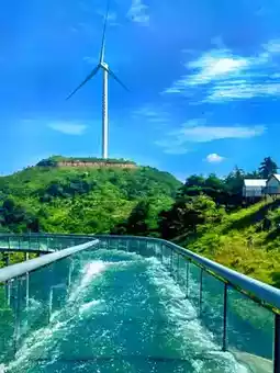 The scenic area features the Ten-Mile Gallery sightseeing trail, where you can see herds of cattle and sheep leisurely strolling along the way. Visitors can experience special activities such as horseback archery and grassland sliding, and also enjoy exciting equestrian performances. The newly built glass viewing platform extends beyond the cliff, with a sheer drop beneath your feet, offering thrilling excitement.