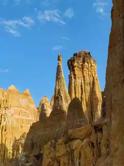 In the world, soil pillars of various shapes are mixed and distributed. If you look closely, some of the soil pillars look like mighty warriors, ready to go; others are like cones and arrows, pointing straight to the blue sky🌌, which is breathtaking. At dusk, the earth forest under the setting sun presents a charming golden color, which is a great time to take photos.