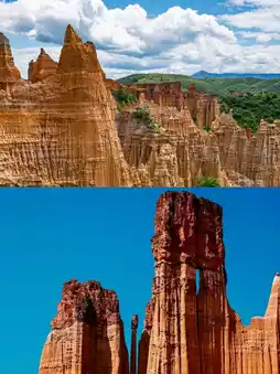 Diverse Shapes: Within the earth forest, earth pillars, earth platforms, and earth cliffs stand in a staggered arrangement with various shapes. Some resemble majestic ancient castles, while others look like lively sculptures, combining to form a magical world of "earth sculptures."