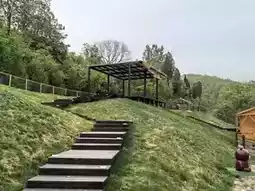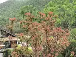 After walking along the mountain path for a short while, a homestay nestled on the hillside came into view. My friend introduced it as the most luxurious accommodation in the county—Lishan Zuoan Homestay. The lodging area is situated among lush trees in an exceptionally tranquil and distinctive environment. For guests' safety, tourists are not allowed to visit. I only briefly viewed the exterior, but the walking plaza had an artistic ambiance, with piano and cello models that significantly elevated the cultural sophistication of the place. Many locust trees also surround the homestay area, with blooming white flowers releasing their fragrance, warmly welcoming every distinguished visitor!