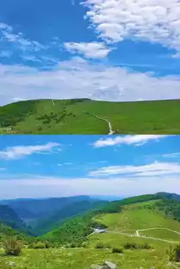Continue to **Shunwangping Summit**, where 5,400+ acres of lush meadows feel like nature’s green carpet. Standing here, clouds drift beneath you, as if you’re walking in the sky ☁️ Legend says this was where Emperor Shun farmed in ancient times, and the Shunwang Temple adds a touch of history to the scenery 📜