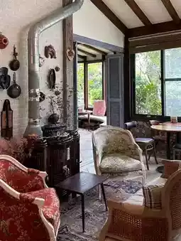 The lobby is designed with a strong European countryside feel, and the breakfast dining area is particularly impressive. It features a fireplace, vintage European-style sofas, an open kitchen, and a high ceiling. Dining here is truly a delightful experience.