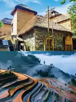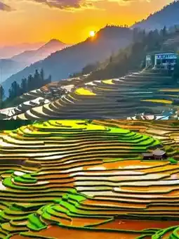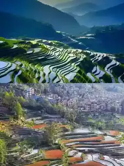 - Bada Terraces 🌾: The vast Bada Terraces stretch from the Malizhai River at an altitude of 800m to the top of the mountain at over 2,000m. At sunset, the golden afterglow sprinkles on the terraces, sparkling and magnificent.