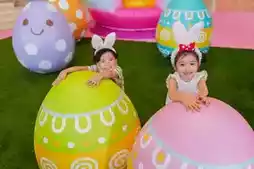 A must for children to discharge! From the 4-meter-high inflatable Easter egg indoors to the 20,000-square-foot Shu Tai Garden outdoors