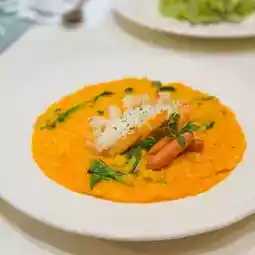 Carrot shrimp pasta visually has attracted me carrots taste very sweet and perfectly blended into the pasta rice soft hardness moderately cut into small pieces shrimp bite some elastic 🍤 together and quite tasty