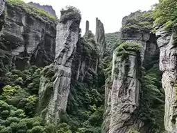 Looking up, the strange peaks and rocks are scattered like stars, as if they broke out from the depths of the earth, or were forcibly inserted into the sky by a huge force, magnificent and shocking. Each mountain peak is like a work of art carved by nature, with delicate and unique textures on the surface. The vegetation on the mountains is as lush as a green ocean, layer upon layer, making the mountains softer and full of vitality.