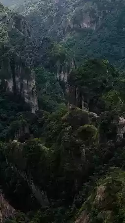 2. Lingfeng Day View: Low-angle shot of the "Scissor Peak and greenery"