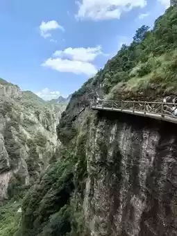 Because it hadn’t rained for several days, the water at Dalongqiu Waterfall evaporated before it even reached the ground, like a child peeing, so it was not worth seeing. We gave up on this spot and went to Baizhangji the next day instead.