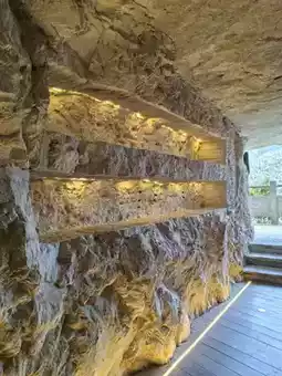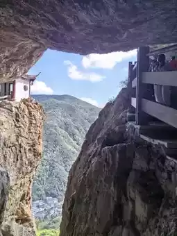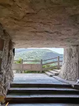 Fangdong Scenic Area has a glass walkway. Lingyan also has a glass walkway, but it’s not as high or as thrilling as Fangdong’s. Fangdong’s glass walkway is built on a cliff and offers more beautiful scenery. After crossing the glass walkway, you reach the essence of Yandang Mountain’s scenery—a cluster of steep peaks, very beautiful, ethereal, and breathtaking! This is basically the highest point; the path ahead is relatively flat. Further on, there is a suspension bridge, and on the other side is Fangdong Café, built inside a square-shaped cave. They offer coffee, milk tea, cakes, and light meals, but prices are a bit high. After resting at the café, we continued and passed through several caves, which explains why the spot is called Fangdong—there are many caves.