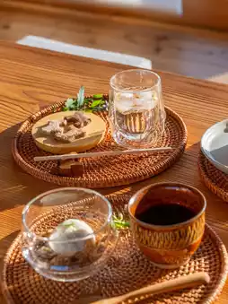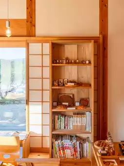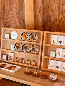 A place where you can enjoy a cafe that is only open two days a week and a sale of wooden products.