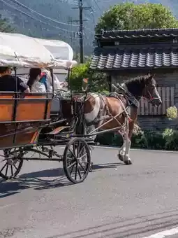 The horse-drawn tourist carriage ride started over 50 years ago and is now a famous tourist attraction in Yufuin.