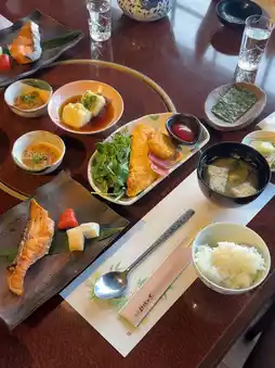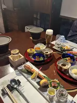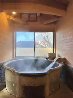 It is located a 10-minute walk from Yufuin Station, and the staff was very kind, so I had a really dreamlike and happy time during my two-day stay. For the two-day kaiseki dinner and breakfast, they served different menus instead of the same food, so I didn't get tired of it and enjoyed it in a different way. The Yufudake view public bath was really love, and personally, I really enjoyed using the hot springs thanks to the private bath in the room that can be used 24 hours a day. Personally, I really like the family bath 4. The bathtub is made of stone, so the bubbles come up, and it feels like a high-class spa, and it's private because we're the only ones using it, so it was really nice.