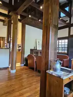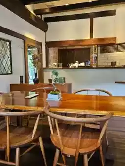 The exterior, which features a large garden, catches the eye, and the interior is decorated with an old-fashioned and warm wood interior, boasting a quiet and cozy atmosphere.