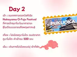 💞Reason for recommendation: Suitable for those who want to go to Japan but have a low budget, only 5 hours flight, it is a peaceful city, not crowded, there are both relaxation with nature and shopping areas, you can go to temples and see castles which are old architectures of Japan, and Fukuoka also has many shopping areas to walk around. This trip is considered a short time but worth it, covering every place.