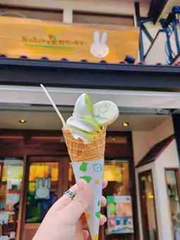 Green tea gelato, gold croquette, eel rice bowl