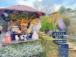 Yufuin, a small Japanese hot spring town, boasts a Floral Village modeled after a British village. Filled with cute fairytale-themed souvenir shops, it's a delightful place to explore. You'll even find characters inspired by Studio Ghibli, like Kiki's Delivery Service.