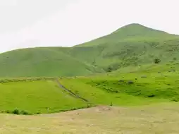 The twin peaks of Mount Yufu rise imposingly, creating a breathtaking view!