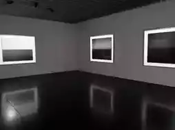 Passing through a doorway, the atmosphere shifts dramatically. Sugimoto's gallery presents a starkly different world. The space becomes dark and serene, echoing the depth and philosophy of his works. On display are his renowned "Seascapes" series—black-and-white photographs capturing various horizons where sky and sea are divided by a single line. The minimalist compositions evoke a profound sense of time and space.