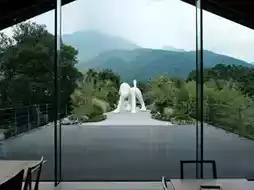 At this moment, Kuma's architectural intent becomes crystal clear. He has not merely built a museum but crafted the most beautiful "frame" for Yufuin's natural scenery. The black "Yakisugi" structure, the white artwork, and the distant green mountains together form a harmonious and stunning composition. The architectural lines guide your gaze, ultimately focusing on the sacred mountain guarding Yufuin. Art is no longer confined indoors but is released and extended, connecting with the broader world.