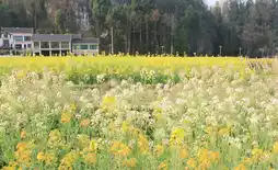Located by the seawall, there are fifty to sixty mu of rapeseed fields, stretching from the roadside to the foot of the mountain. Looking out from a high vantage point, the fields are scattered in an orderly fashion, and birds fly among the flowers, full of life.