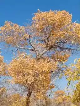 On the edges of the Taklamakan Desert, the Populus euphratica forest creates a miracle of life with its tenacity—thriving for millennia without perishing, standing for millennia after death, and enduring without decay for millennia after falling. In the golden autumn, they take on a dazzling golden hue, standing proudly under the vast yellow sands and azure sky like blazing flames. This ancient ecological barrier not only resists wind and sand erosion but also forms a unique and breathtaking natural landscape in Southern Xinjiang.