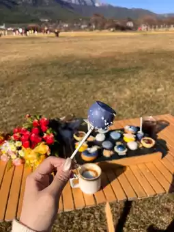 During the day, you can take beautiful photos of sacred trees, forest streams, lakes, and afternoon tea.