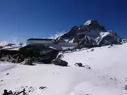 The sacred mountain and settlement of the Naxi people in Yunnan, often shrouded in mist halfway up, with undulating mountain ranges, looks like a giant silver dragon from a distance, hence the name 'Jade Dragon Snow Mountain.' It is a must-visit attraction in Lijiang.