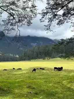 2⃣ Alpine meadow: Green grass in spring and summer, golden ground in autumn and winter, surrounded by snow-capped mountains, it is an ideal place to photograph the romantic atmosphere of "Yulong Third Kingdom".