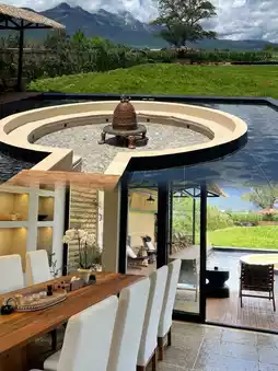 This isn't like a hotel; it's more like a parallel universe at the foot of snow-capped mountains.