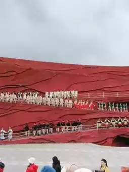 The Impression Lijiang show is located in the park area, which is where the Jade Dragon Snow Mountain is located. We watched the show at 2:30 PM, which was an hour long. When we went, the sky was overcast and foggy, so we couldn't see the Jade Dragon Snow Mountain. This show is about the culture of the local tribes. There will be horseback riding and various games that will change. It's quite enjoyable to watch.