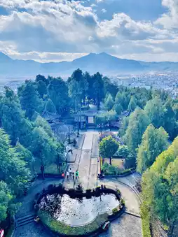 Mufu, the Tusi government office of the Mu family, originated in the Yuan Dynasty and flourished in the Ming Dynasty. The main building was built in the Ming Dynasty and rebuilt in 1988. Mufu reflects the architectural style of the Central Plains in the Ming Dynasty and also witnesses the spirit of Naxi traditional culture. The central axis building faces west and east, welcoming the rising sun and gaining wood energy. The Azure Dragon (Jade Dragon Snow Mountain) is on the left, the White Tiger (Tiger Mountain) is on the right, the Red Bird (Turtle Mountain and Snake Mountain) is in front, and the Black Tortoise (Lion Mountain) is behind. Along the central axis, Loyalty Archway, Council Hall, Wanjuan Building, Yuyin Building, Dharma Hall, Sanqing Hall, and Guojielou are built according to the terrain. On the north side is the Mu family courtyard with three courtyards. Between the two groups of buildings is a garden. Xu Xiake, a travel geographer, was invited to Lijiang by Tusi Mu Zeng. The two hit it off at first sight and had a deep relationship.