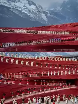 Zhang Yimou Show is a must-see show when visiting Lijiang or nearby cities! This is an art show that combines music, dance, and spectacular effects. Directed by the famous Zhang Yimou, known for his famous movies such as House of Flying Daggers and Hero, this show is nothing short of extraordinary.