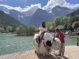 Additionally, you can enjoy a unique experience by riding a large white yak by the vibrant turquoise-green lake, making for an unforgettable photo opportunity.