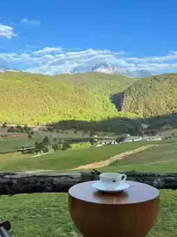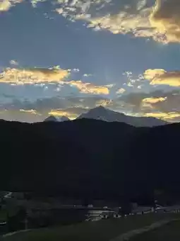 On clear mornings, you can witness the golden sunrise over the snow-capped mountains.