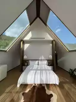 The all-glass rooms let you enjoy the entire ranch from bed. Watching the sunset slowly fade in the evening is pure bliss.