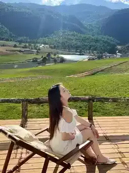 It takes 1.5 hours from Lijiang Ancient Town to reach Peach Blossom Valley Ranch at Jade Dragon Snow Mountain. The hospitality is incredible—handsome guys like "Li Ronghao," "Edison Chen," "Bosco Wong," "Ma Siwei," and "Wang Baoqiang" personally picked us up at the station! When they helped with our luggage, they literally shone with charm ✨