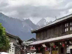 From Baisha Ancient Town, you can see the majestic Yulong Snow Mountain in the distance. Viewed in the clear air and tranquility, it looks like a painting.