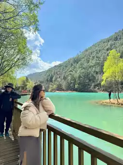 🏔️ Breathtaking Backdrop – Located at the base of the Jade Dragon Snow Mountain, the contrast between snow-capped peaks and crystal-clear waters is absolutely stunning.