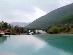 📝: Blue Moon Valley is a stunning turquoise lake located at the foot of the Jade Dragon Snow Mountains in Yunnan Province. The valley's name comes from the crescent-shaped blue water, which is formed by melting mineral-rich glaciers.
