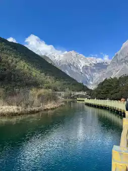 Take the Jade Dragon Snow Mountain Cable Car and easily reach the Glacier Park at 4,506 meters above sea level, where you can admire the panoramic views of the snow-capped mountains up close. Along the way, you'll encounter glaciers, snow-capped peaks, glacial lakes, and alpine plants, creating a delightful spectacle at every step. For photography enthusiasts, capture the breathtaking sight of snow-capped peaks reflected in the azure waters of Blue Moon Valley at the foot of the mountain.