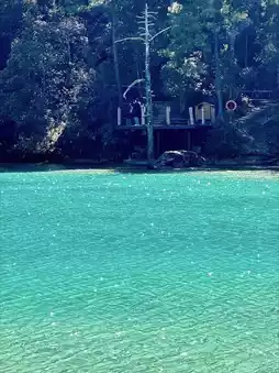Walking along the lakeside, the azure waters, the reflections of the snow-capped mountains, and the emerald green of the pine forest intertwine. The afternoon light is at its softest, casting a cascade of blue, green, and silver across the lake and rocks. Occasionally, waterfowl fly across the lake, and the wind blows from the valley, inviting you to slow down and savor the tranquility and freshness of the lake and mountains.