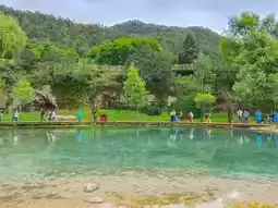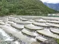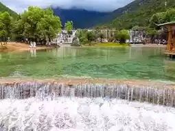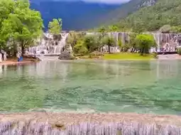 The water in Baisuihe Lake is formed by melted snow from the Jade Dragon Snow Mountain, which flows down through waterways and collects in the white limestone layers. It contains a high amount of copper sulfate (CuSO4), giving the water a crystal-clear turquoise hue. (The lake's water is not drinkable!) From a distance, it resembles the moon amidst the valley, hence the name. "Blue Moon Valley"